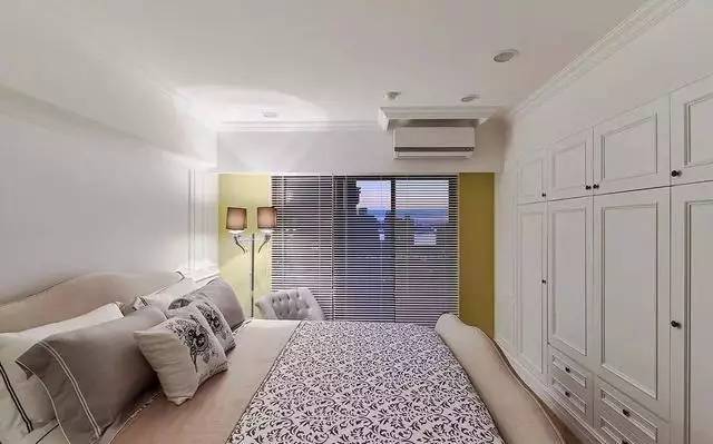 主卧室以白色作为基底色,用白色的线板以及局部跳色来丰富空间层次,不变的是休闲的装修主题。